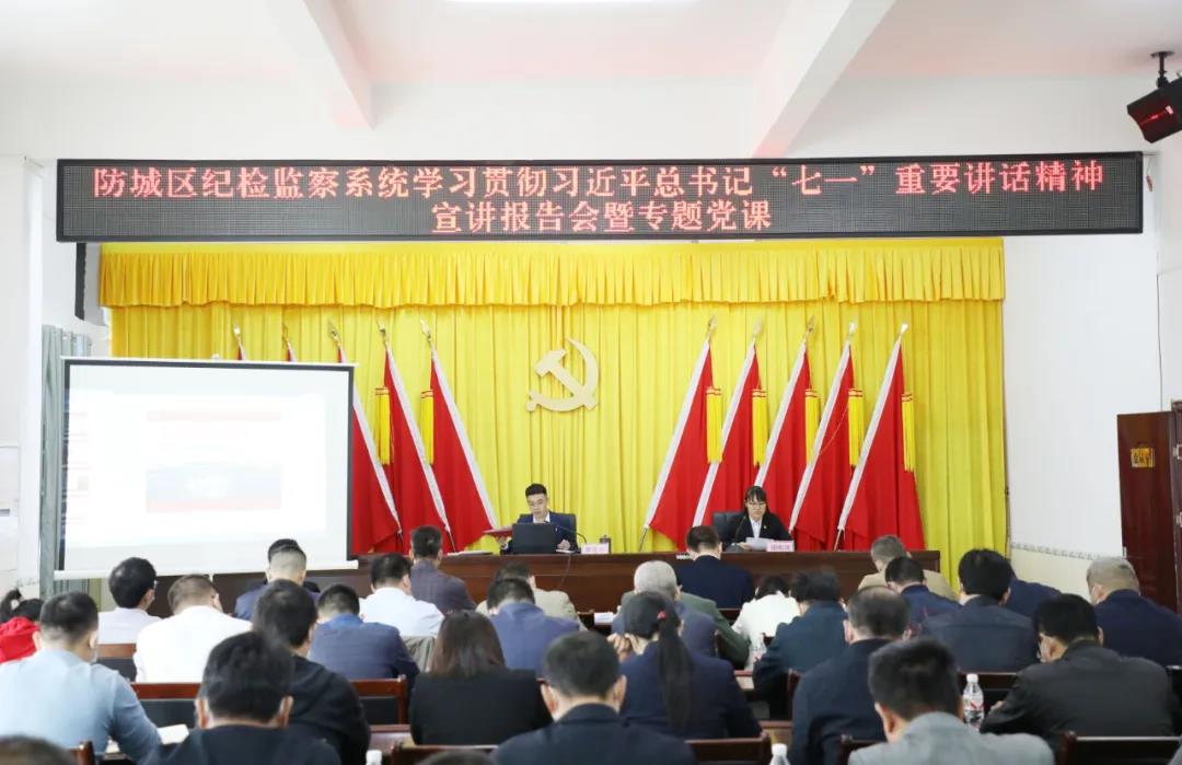 10月18日,防城区纪委监委举办全区纪检监察系统学习贯彻习近平总书记“七一”重要讲话精神宣讲报告会暨专题党课。区委常委、区纪委书记、区监委主任廖廷华以“弘扬伟大建党精神在新阶段推进防城区纪检监察工作开好局”为主题,向全区纪检监察干部上专题党课。他强调,全区纪检监察干部要大力弘扬伟大建党精神,进一步解放思想、转变作风、提升能力,坚定不移、一以贯之深化全面从严治党,坚定不移推进党风廉政建设和反腐败斗争,持续巩固发展良好的政治生态,建设新时代清廉防城,为推动我区“创新突破、跨越发展”作出新的更大贡献。
